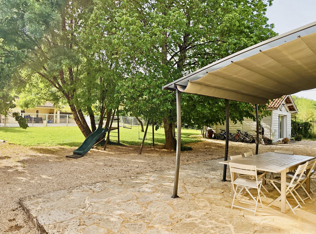 À l’extérieur, un grand jardin arboré accueille une piscine entièrement clôturée et sécurisée pour la tranquillité des parents. Les installations de loisirs sont à l’honneur avec une terrasse couverte, une aire de jeux pour enfants et une salle de jeux intérieure dédiée au divertissement. Un carport est également à votre disposition pour abriter vos véhicules et vos équipements. Pour une détente absolue, vous pouvez profiter en option d’un espace indépendant comprenant un spa avec bain à remous et un coin salon privatif.