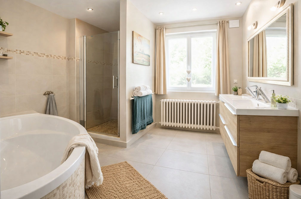 Cette spacieuse villa de 177 m² répartis sur deux niveaux offre un cadre idéal pour vos séjours en famille ou entre amis. La demeure dispose de six chambres confortables dont cinq sont équipées de lits doubles et une de deux lits simples. L’espace intérieur se complète d’une salle de bain avec baignoire et douche, d’une salle d’eau supplémentaire ainsi que de deux WC. Pour vos repas, vous profiterez d’une cuisine entièrement équipée, indépendante de la vaste pièce de vie qui regroupe un salon chaleureux et une salle à manger conviviale.