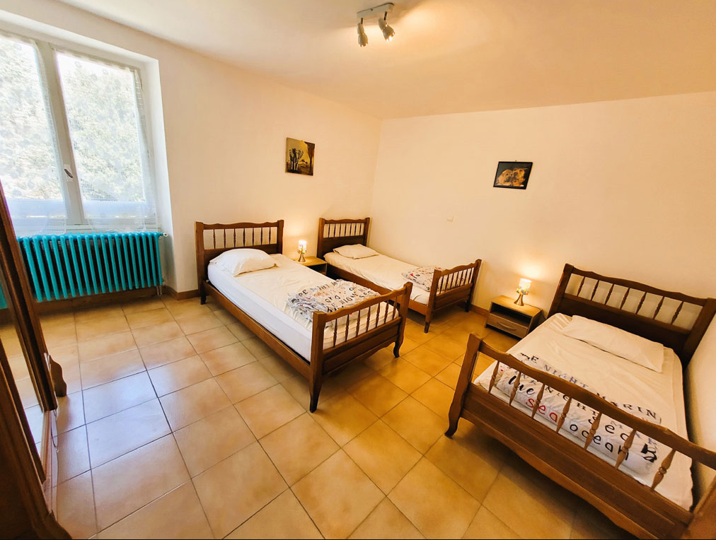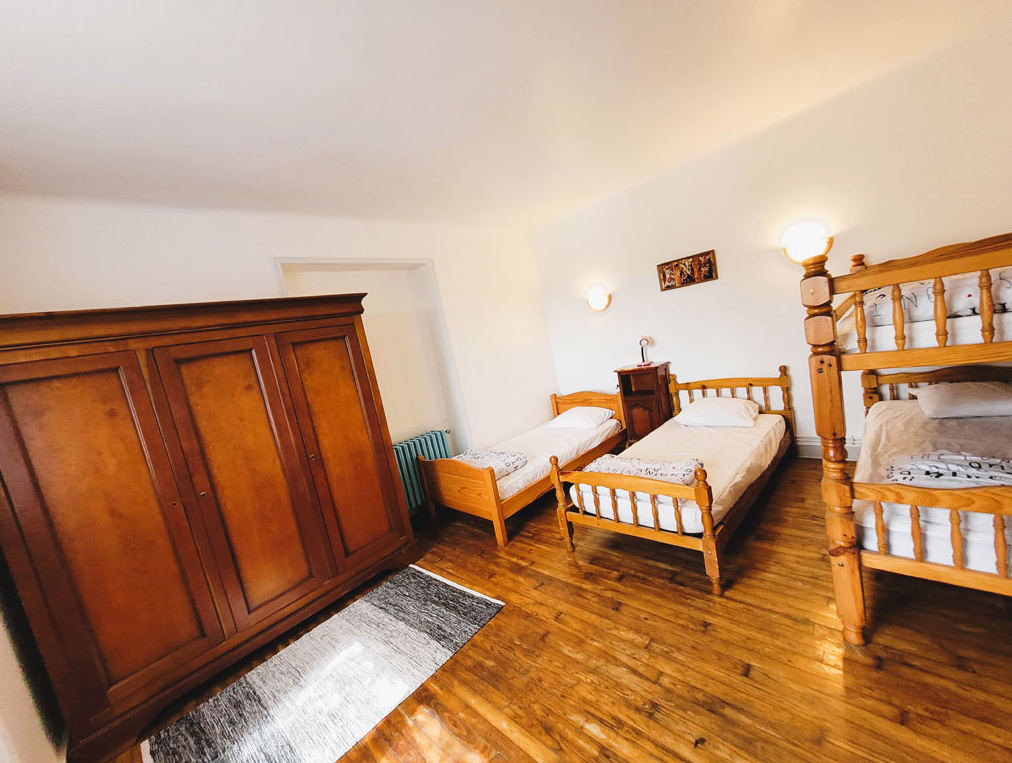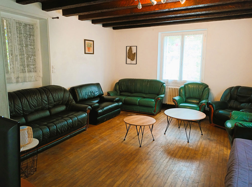 L intérieur se compose au rez-de-chaussée d un salon avec canapé-lit d une cuisine ouverte sur le séjour et d une chambre double avec sanitaires privatifs l étage dessert six chambres modulables mêlant lits doubles et lits simples idéales pour les familles nombreuses complétées par deux salles de bains et une salle d eau supplémentaire juste en face vous profitez d un accès libre à quatre hectares de bois et prairies incluant terrain de pétanque volley-ball et aires de pique-nique avec des hôtes sur place pour guider vos découvertes locales