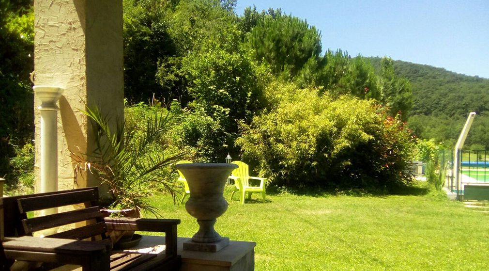 Le jardin dispose de barbecues de bains de soleil de parasols et de salons extérieurs sous l ombre des pins avec une piscine sécurisée de onze mètres sur cinq accessible par un escalier roman Si l été permet de profiter pleinement du parc l hiver offre également de superbes moments ensoleillés au domaine ou un accès privilégié aux stations de ski