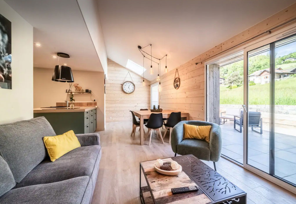 Le Gîte Privatif : Votre refuge nature Découvrez un espace idyllique pouvant accueillir jusqu’à 12 personnes, alliant confort et intimité. Niché en pleine nature, ce gîte regroupe les logements Flocon, Mont Blanc et Bois Joli, permettant à chacun de disposer de son propre espace tout en profitant d’un accès illimité à l’espace détente.